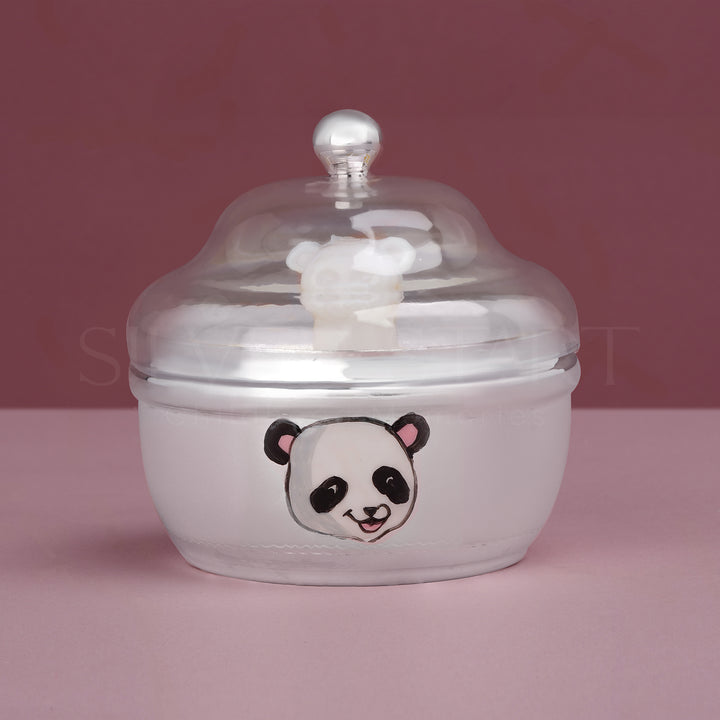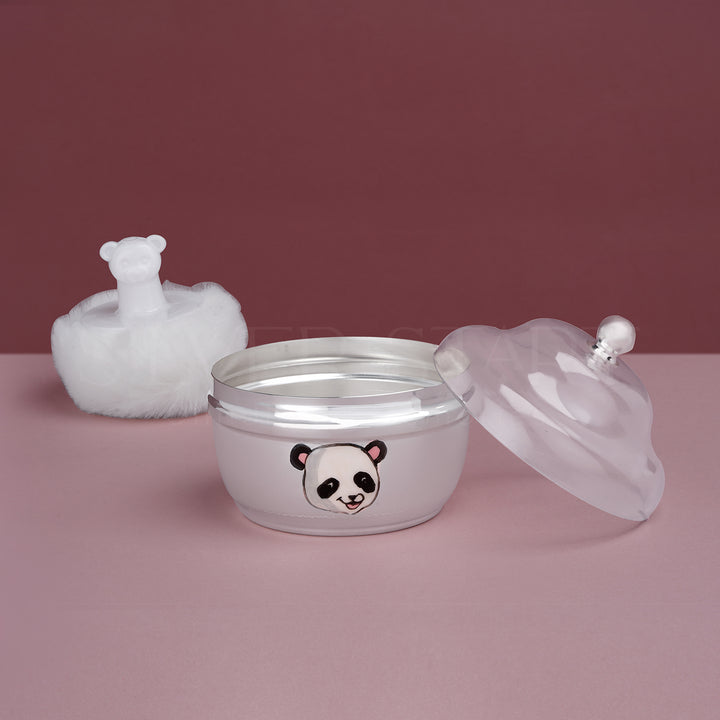 Pure Silver Baby Powder Box with Puff – Adorable Panda Design | Gentle, Cute & Premium (92.5 Purity, 65 Grams))