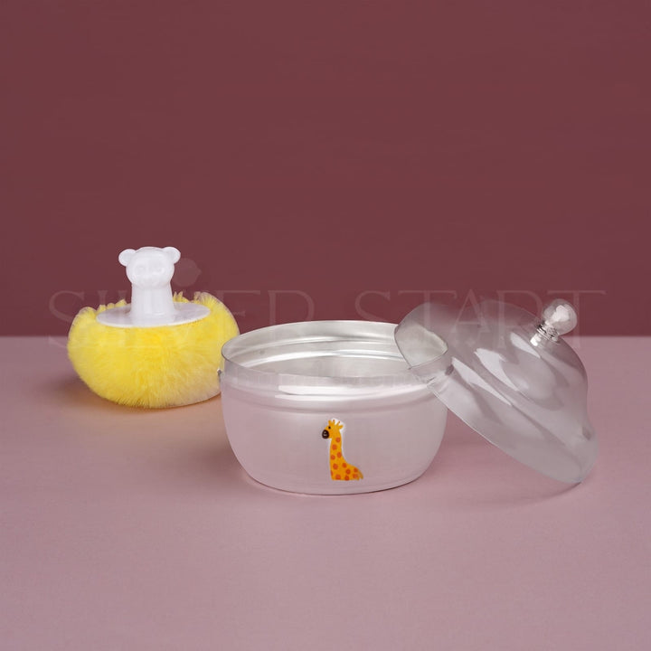 Pure Silver Baby Powder Box with Puff – Playful Giraffe Design | Safe, Adorable & Premium (92.5% Purity, 65 Grams))