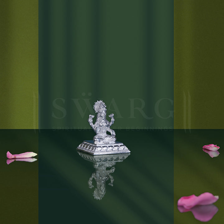Pure Silver Goddess Lakshmi/Laxmiji Solid Idol with Square Designer Base/Paat (925 Purity)