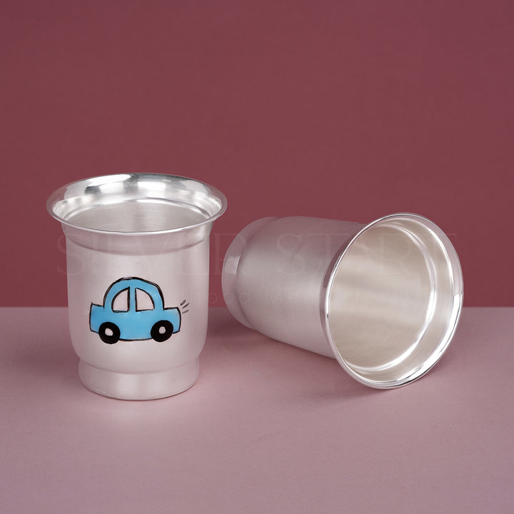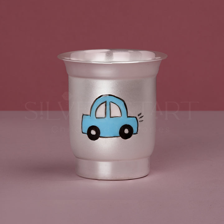 Pure Silver Kids Glass – Blue Car Design (92.5% Purity) | Fun, Safe & Premium