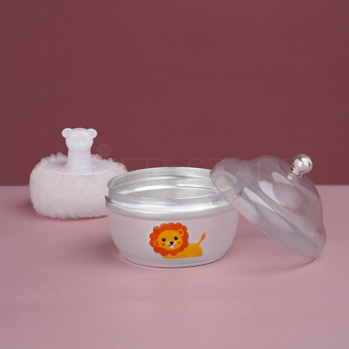 Pure Silver Kids Powder Box with Puff – Brave Lion Design | Gentle, Fun & Premium (92.5% Purity, 65 Grams)