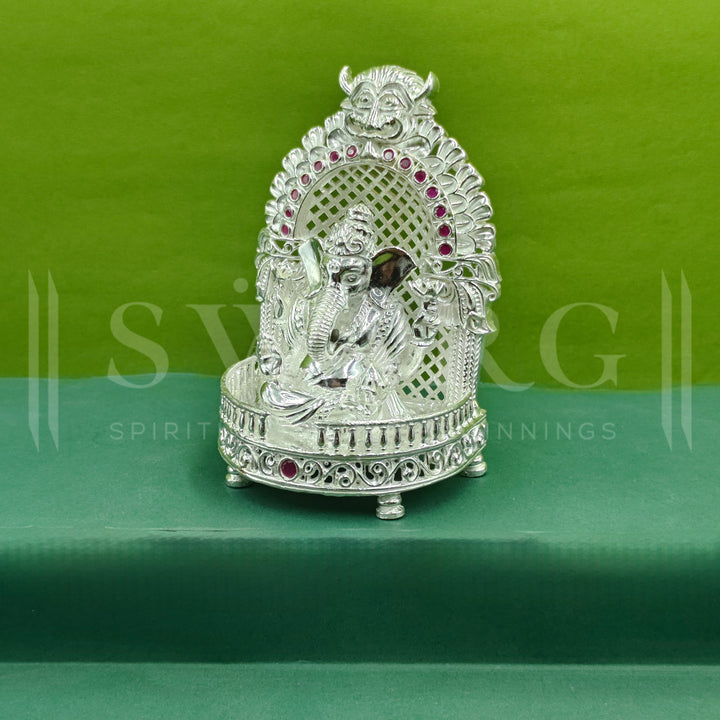 Pure Silver Lord Ganesh/Ganpatiji BIS HALLMARKED Solid Idol on Beautiful Sinhaasan (925 Purity)
