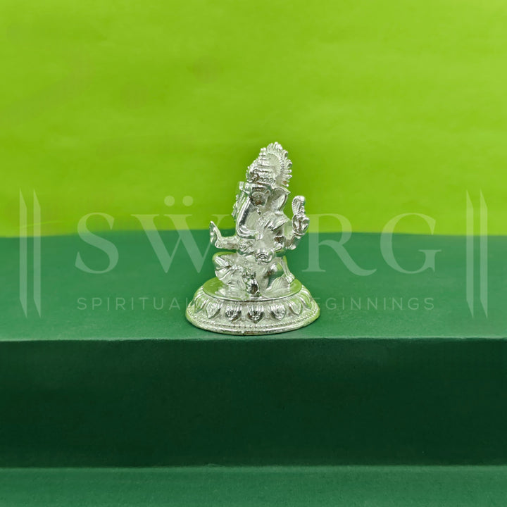Pure Silver Lord Ganesh/Ganpatiji BIS HALLMARKED Solid Idol with Round Designer Base/Paat (925 Purity)(50 Grams)