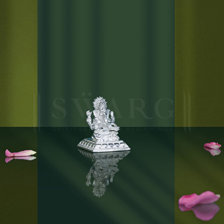 Pure Silver Lord Ganesh/Ganpatiji BIS HALLMARKED Solid Idol with Square Designer Base/Paat (925 Purity)
