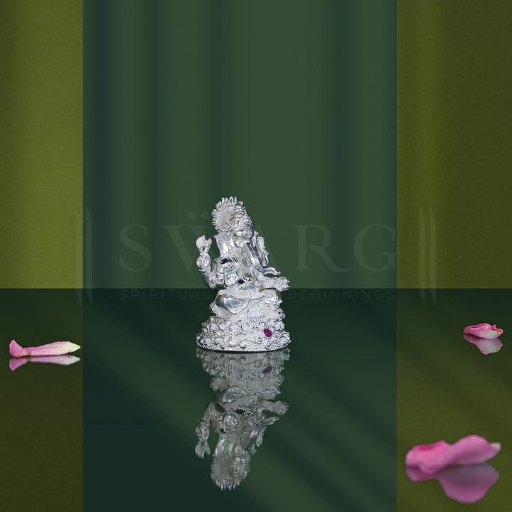 Lord Ganesha is one of the best-known and most worshipped God in the Hindu Mythology. As the god of beginnings, he is honoured at the start of rites and ceremonies. Here we present, Silver Ganesh Idol/Murti with 92.5% Purity. It comes with a Sleek Design & Shiny Appearance along with a Colour Stone. Bringing this Idol to your home adds up the Indian Cultural touch to your Home Décor.