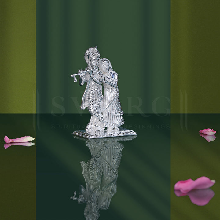 Pure Silver Radha Krishna Solid Idol with Flute & Rectangle Base (925 Purity)
